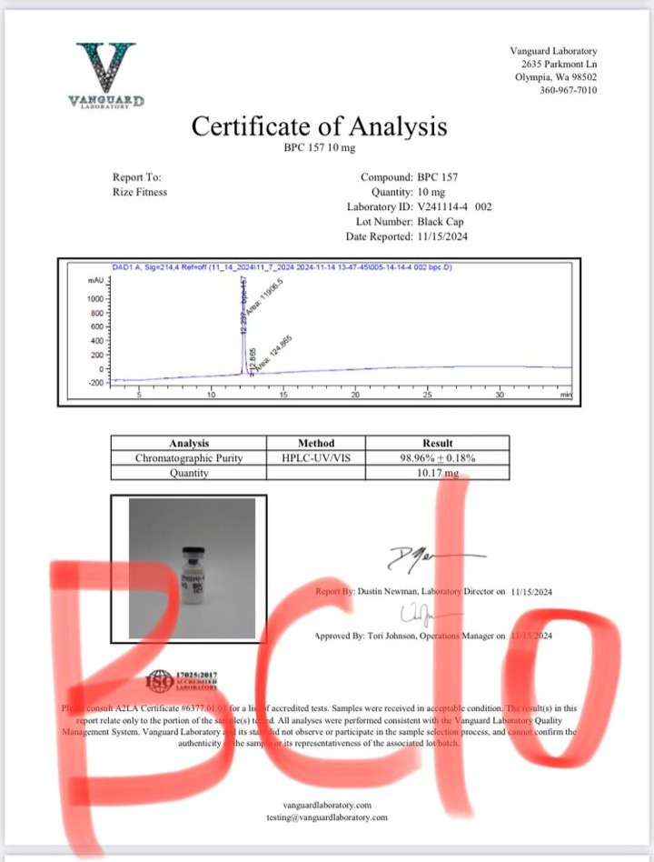 A certificate of analysis is a formal laboratory-prepared document that details the results of one or more laboratory analyses, signed—manually or electronically—by an authorized representative of the entity conducting the analyses.